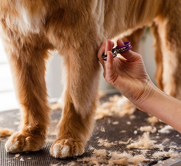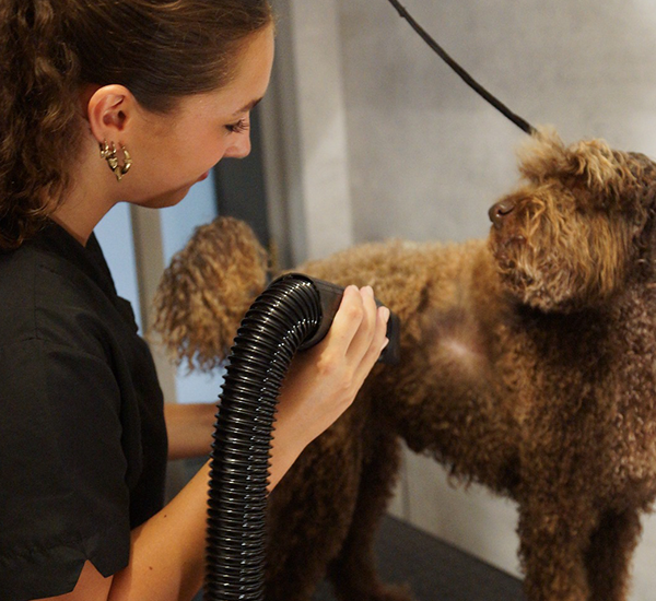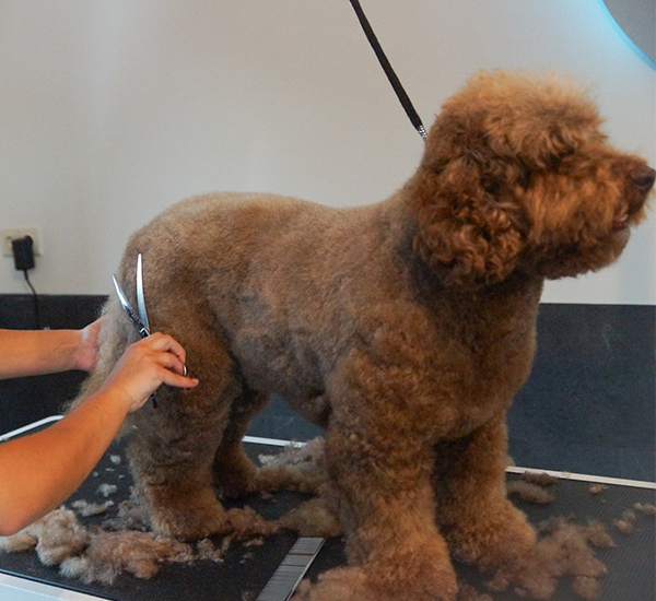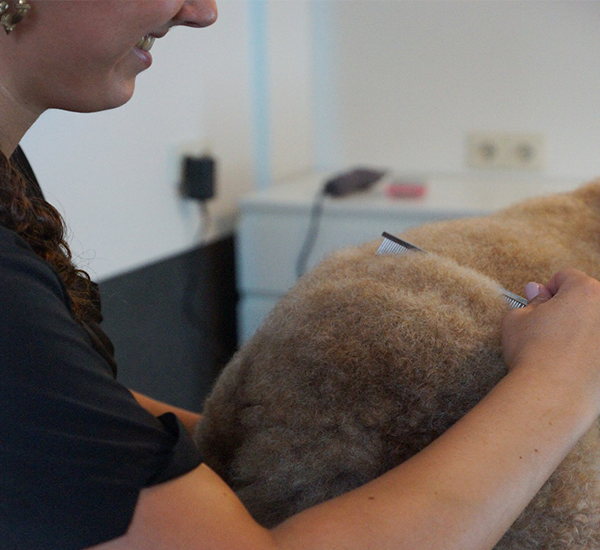 Een volledige trimbeurt bestaat altijd uit het knippen van de nagels, het reinigen van de oren, het scheren van de voetzolen en de genitalen en het wassen en föhnen van de vacht. Vervolgens kies ik de passende behandeling voor jouw hond.